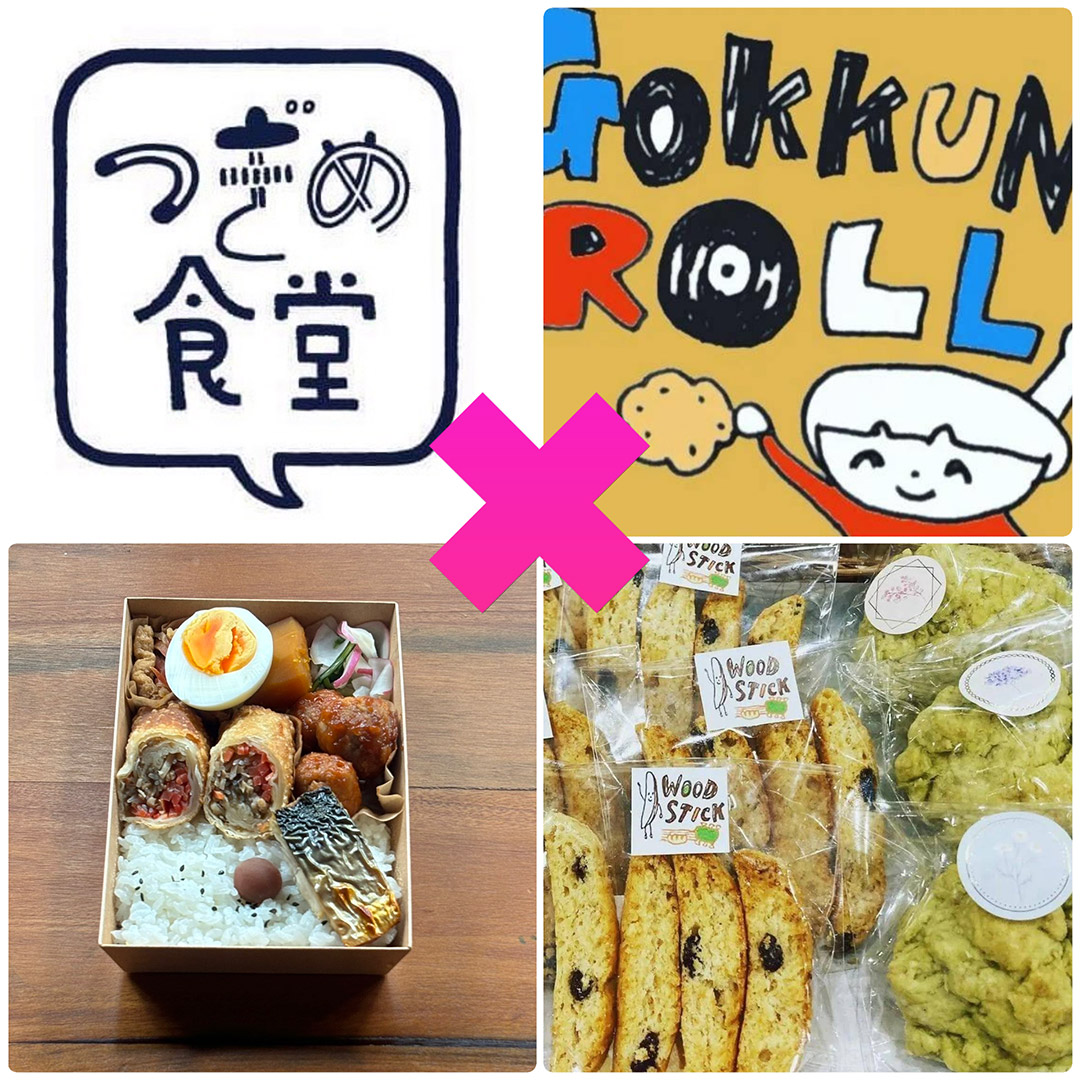 つぎめ食堂は無農薬で安心できる新鮮なお野菜を使用し、身体にいいものを心がけてお弁当を作っています。今回は、さすらいの出張焼き菓子屋マクロビおやつ活動10年目の「ごっくんロウル」さんとのコラボ出店です!