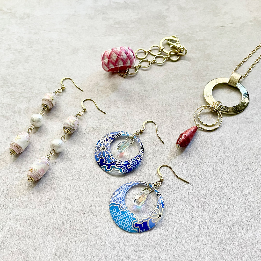 【委託参加】和紙や絹糸を使用したアクセサリーや小物、それぞれの美しさをお届けします。紙のアクセサリーは切り出す場所で柄が違うので、貴方だけの1点ものを見つけて下さい。加賀ゆびぬきの帯留め・チャームもございます。
