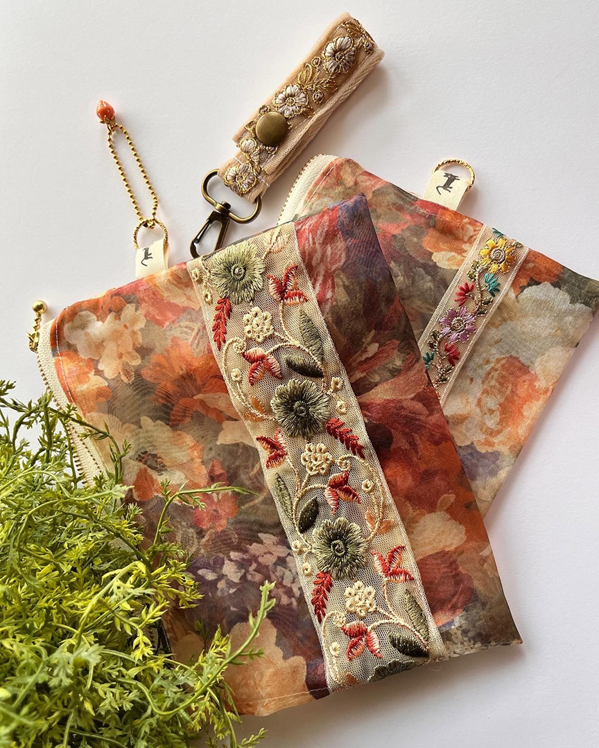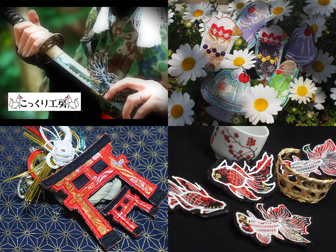 【委託参加】西陣織の生地にミシン刺繍をしてアクセサリー(ブローチ、帯留め、ネックレス等)を制作しています。柄の出方がそれぞれ違う唯一無二のアイテムです。一期一会の出会いを楽しみに覗いて見てください。