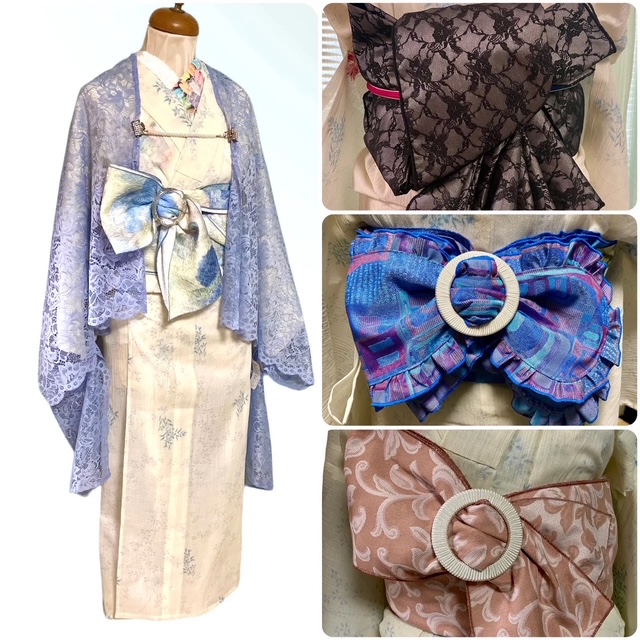 帯から仕上げたコルセットを製作してます。後ろのリボンでサイズ調整して頂き、前側のファスナーをあげるだけで着用できるため、和服に挑戦してみたい方や、気楽に和服を楽しみ方に是非着ていただきたい一品です。