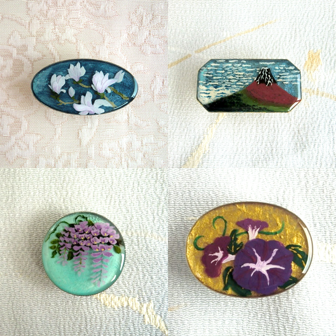 京都在住絵付け師が、出番のない着物や帯に絵付けをして甦らせています。布絵具を使用しお手頃な価格でしみ隠しや柄足し、修正など叶えます。オリジナル和装小物(帯留め、バッグ、ヘッドドレス)野袴なども販売。ワークショップあり。