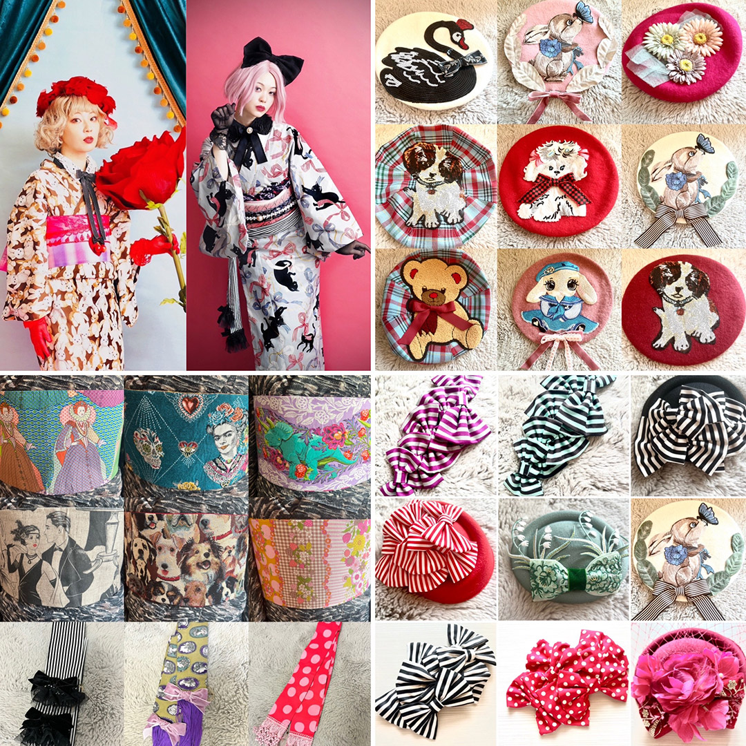 アンティーク着物リメイク、輸入生地半幅帯、ヘッドドレス等、市販されてる物とは違う個性的なこだわったかわいいをお届けしたいと思い、お作りしてます。
